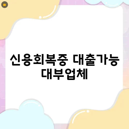 신용회복 중인데 대출 가능한 업체는 어디인가요?